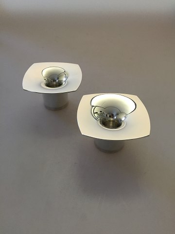 1 Pair of Hans Hansen Sterling Silver Candlesticks in modern design by Leon Kastbjerg Nielsen . Measures 6,3cm high and is in good condition. Comes in the original box.