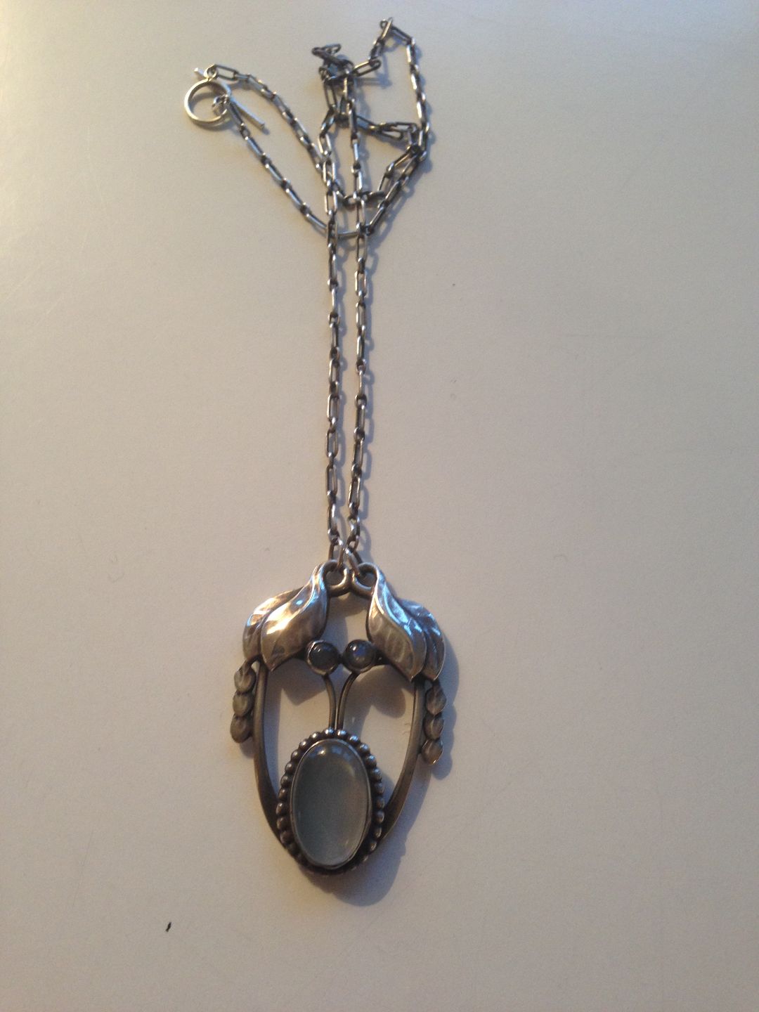 Georg Jensen Sterling 826 Sølv vedhæng med månesten No 4 fra 1904-1908. I perfekt stand.