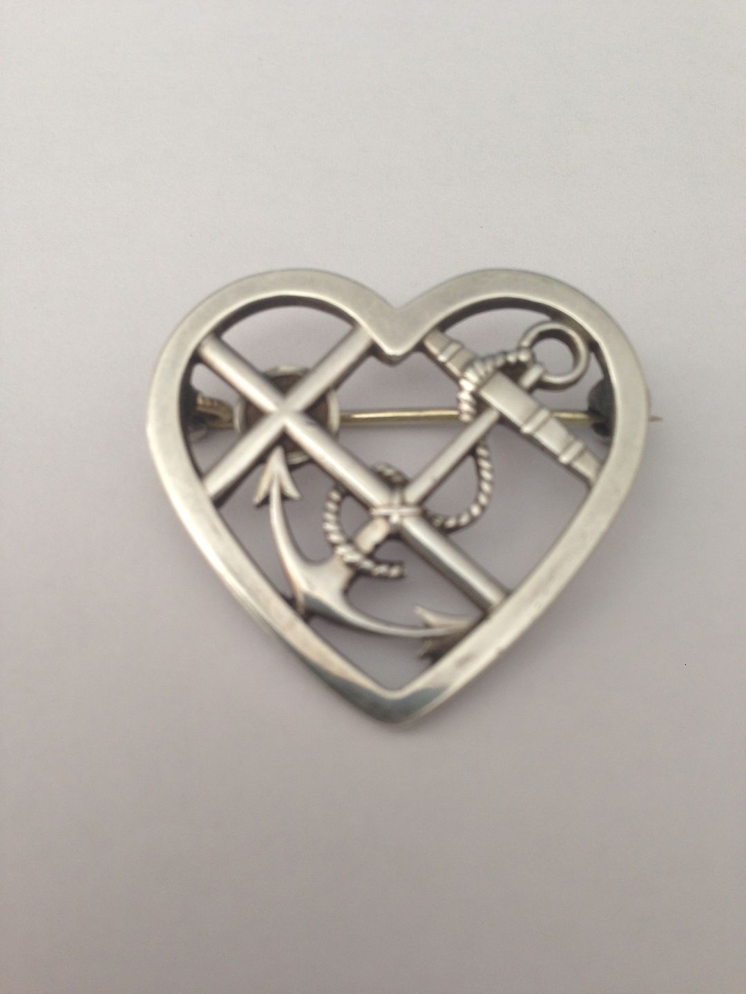 Georg Jensn Sterling Sølv Broche Anker og hjerte No 296 fra 1933-1944. Måler 3cm.