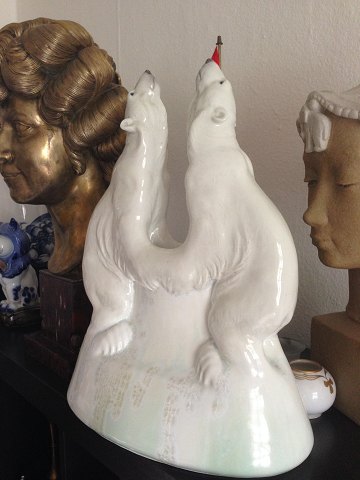 Royal Copenhagen Art Nouveau Krystal Glasur Vase med two isbjørne af Valdemar Engelhardt. Måler 42cm høj og er i perfekt stand. Der findes kun denne ene vase.