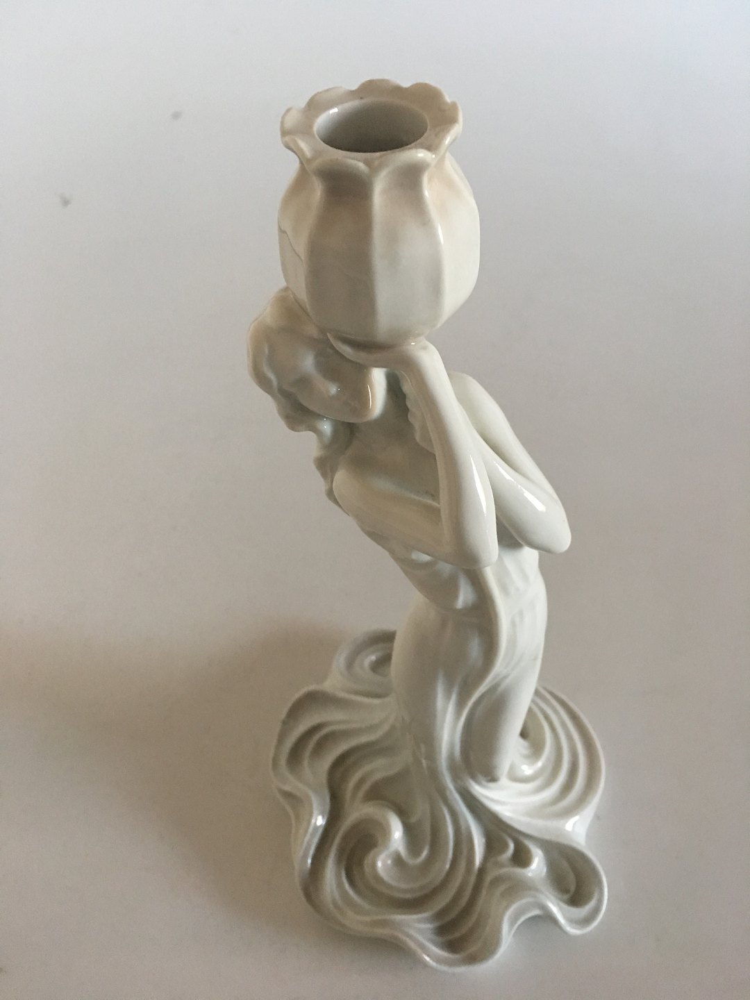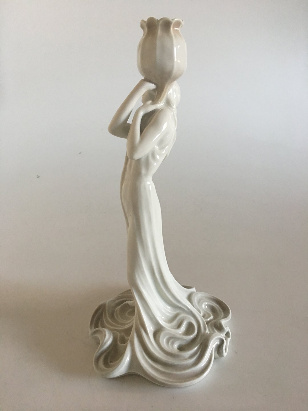 Bing & Grøndahl Art Nouveau lampe formet som dame 2/1525. Måler 25,5cm. Er 2nd sortering, da der er et par slibninger i glasuren. Designed by Jens Peter Dahl Jensen.