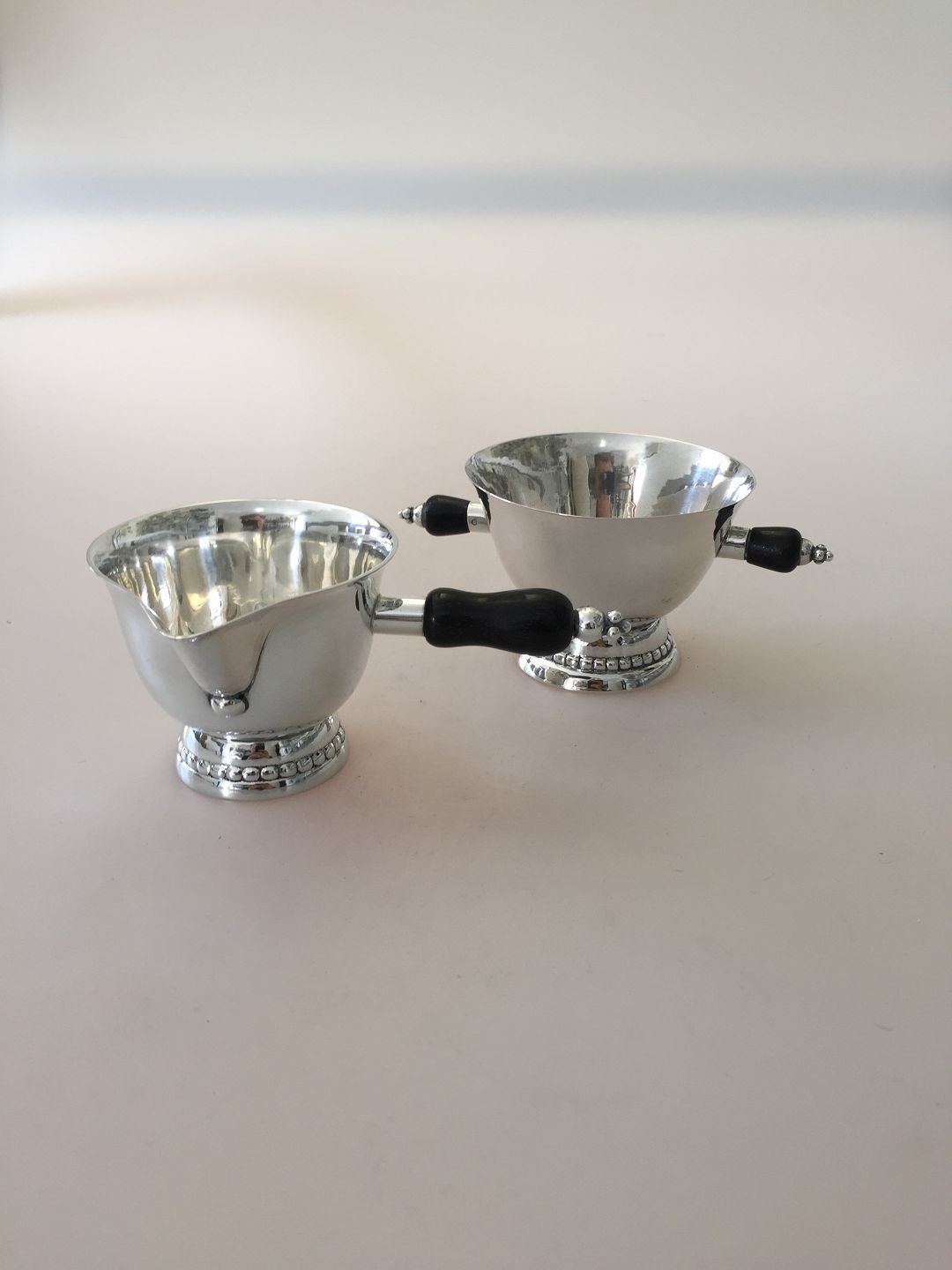 Georg Jensen Sterling Sølv Flødekande og sukkerskål No 41 og 41A. Måler 6cm høje. I perfekt stand. Fra 1915-1930 og efter 1945.