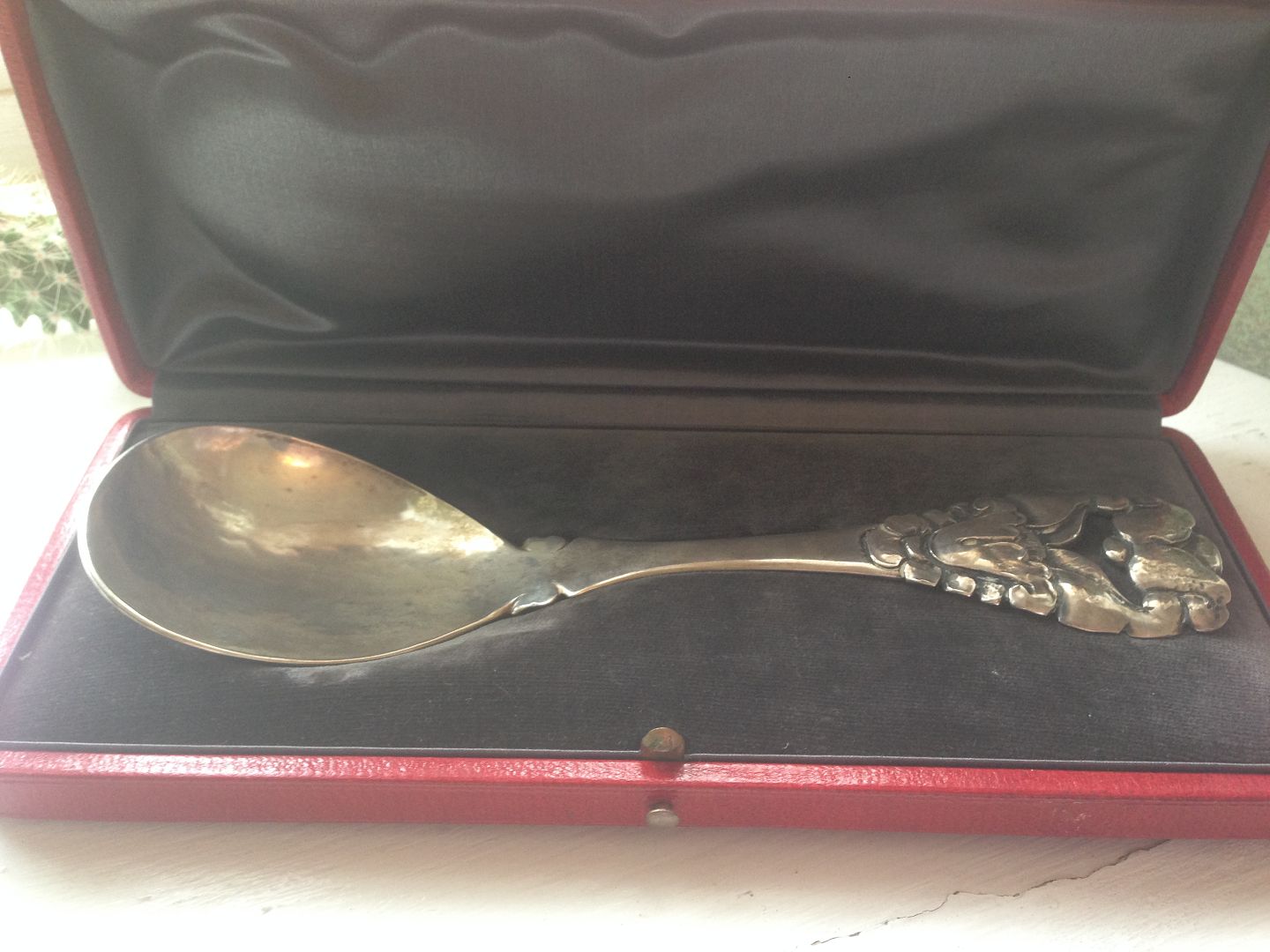 Bindesboel Silver Serving spoon from Holger Kysters Silversmithy in a boks. Measures 18,9cm and is in good condition.