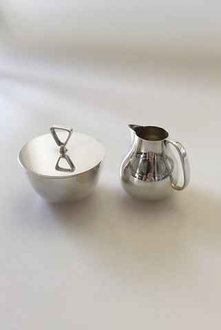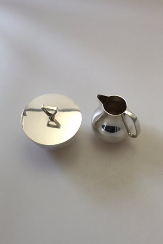 Georg Jensen Sterling Sølv Flødekande og sukkerskål af Sigvard Bernadotte No 1015. Måler 7,5cm høj og er i god stand.