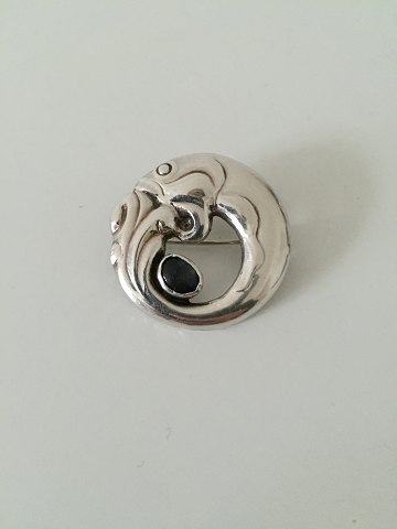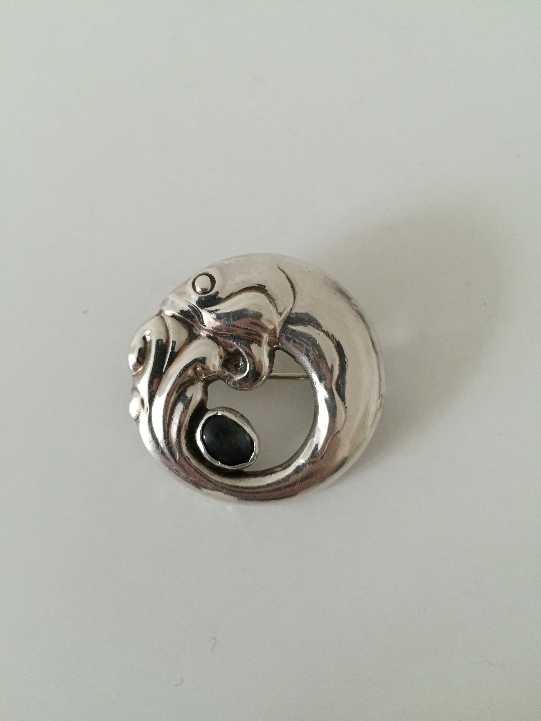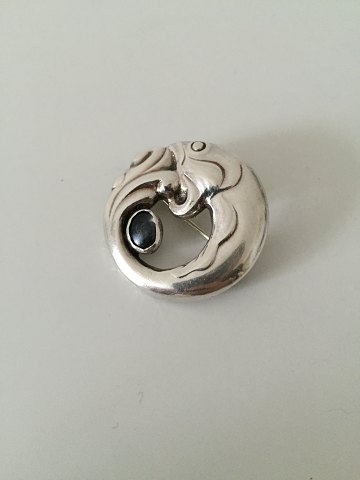 Tidlig Georg Jensen Sølv Broche fiskemotiv og med månesten No 10. Måler 3,2cm. Vejer 7g