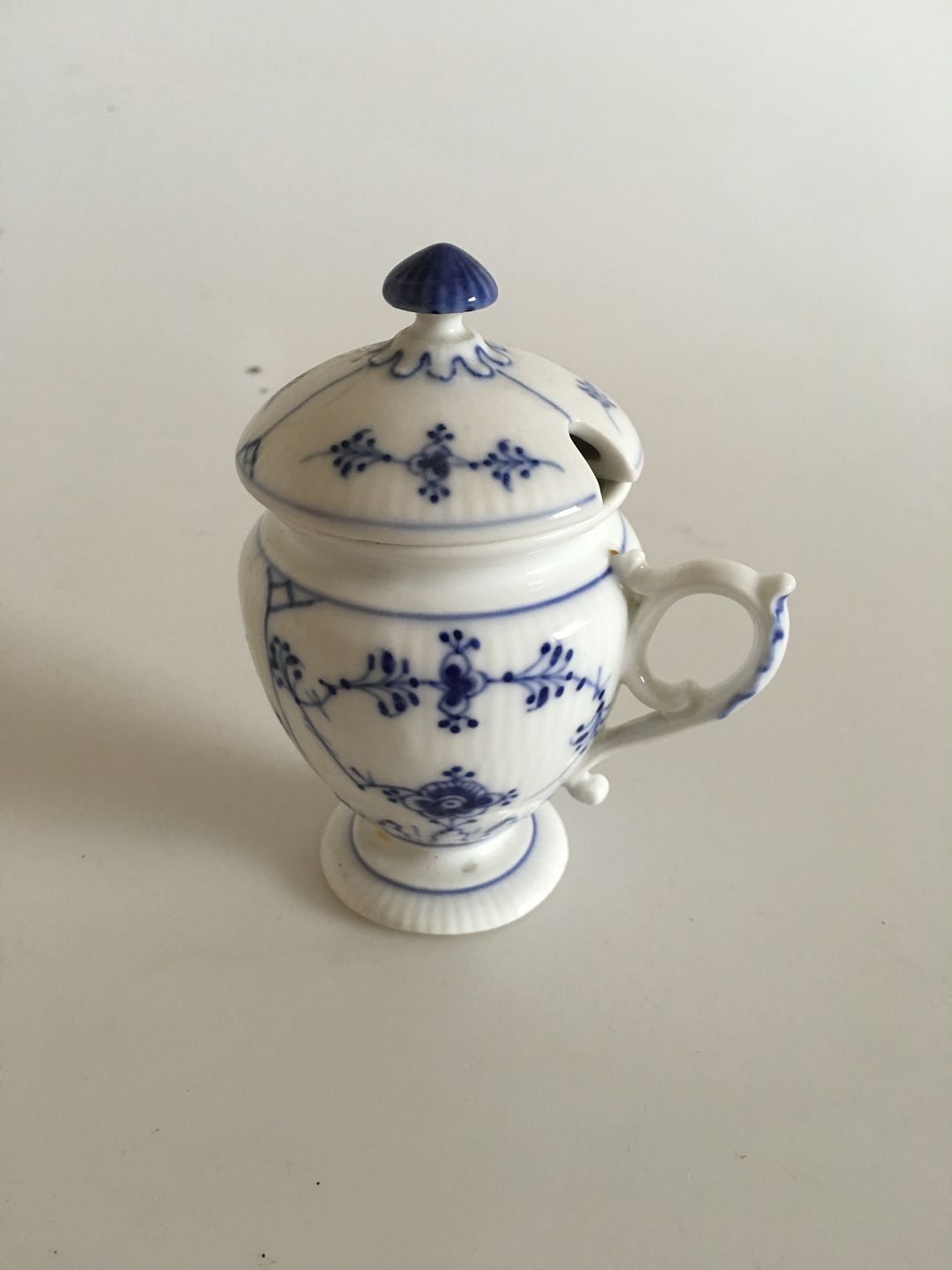 Royal Copenhagen Blue Fluted Plain Mustard Jar with Lid No 138. Measures 12 cm (4 23/32")