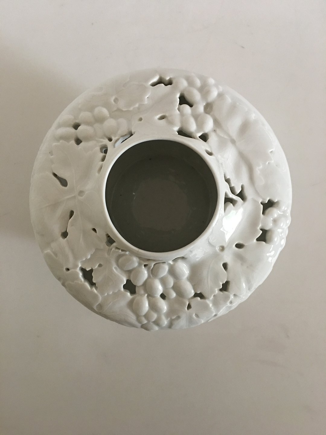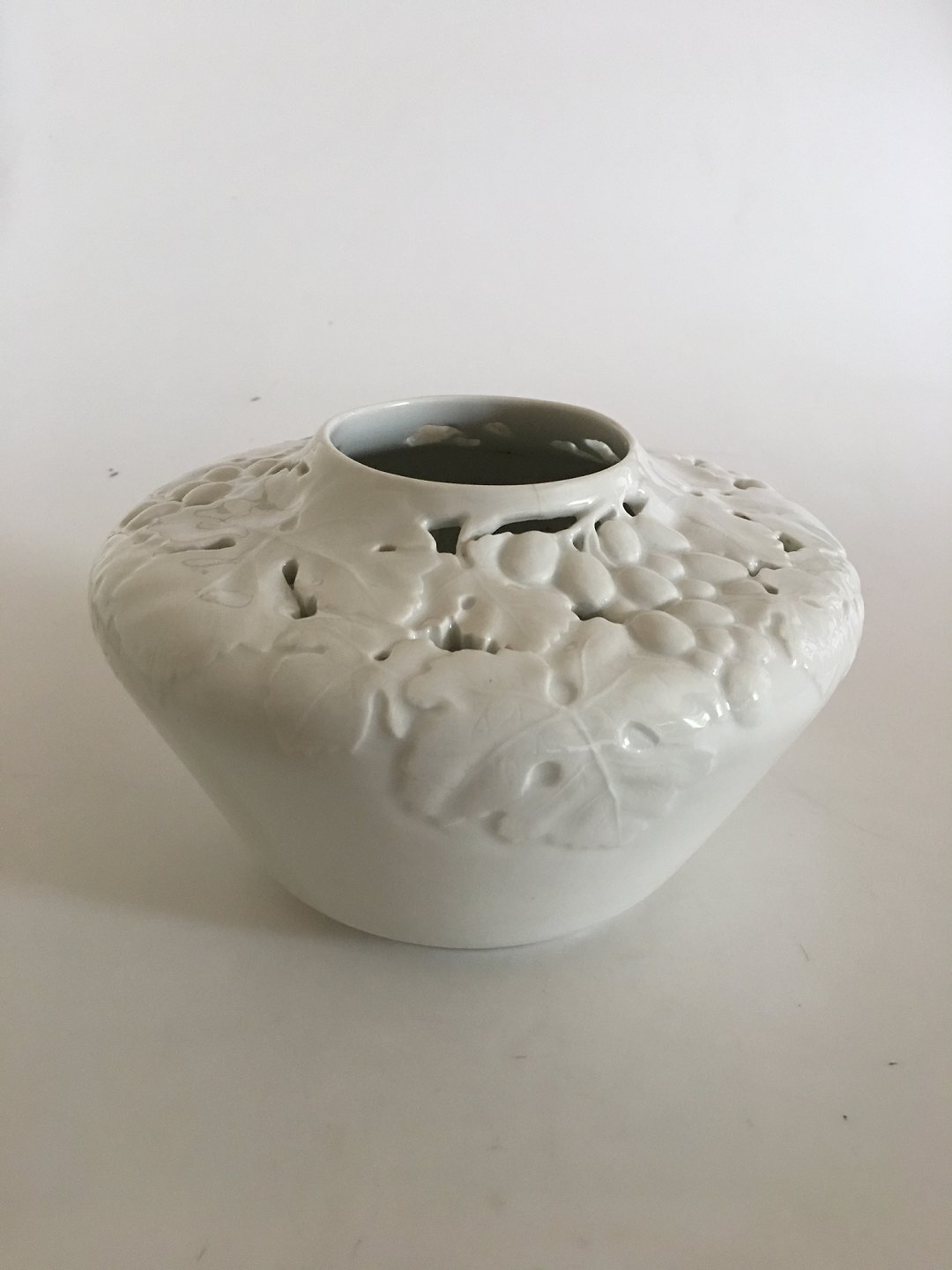 Bing & Grondahl Art Nouveau Unique vase Pierced from before 1900. Measures 13,5cm x 22cm. I do not know the artist. There is a small hairline, see picture.