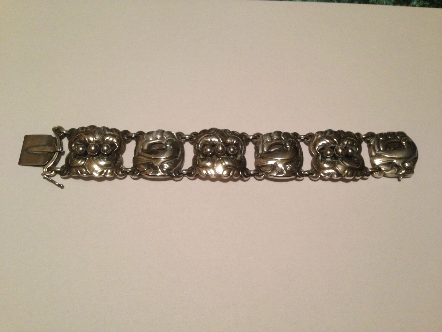 Georg Jensen Sterling Sølv Armbånd med duer og sølvperler No 32. Måler 19,2cm og er i god stand.