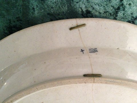 Royal Copenhagen Antique Blue Fluted Oval Dish from before 1790. Measures 36.5 cm x 29.5 cm / 14 3/8 in x 11 39/64 in. Has been repaired several places.