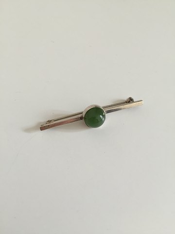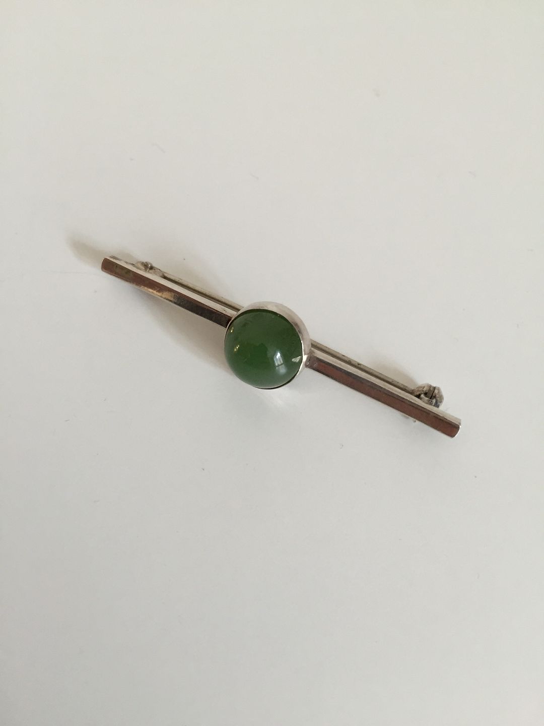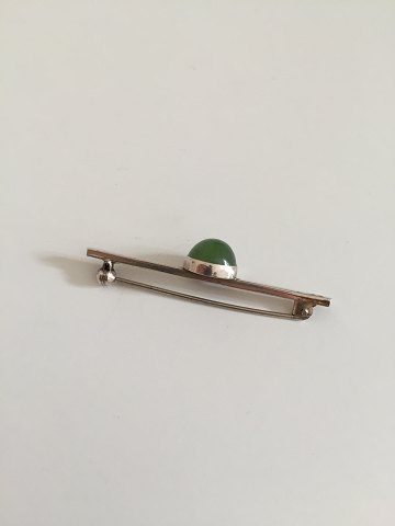 Georg Jensen Sterling Sølv Broche med grøn sten. Måler 5,3 cm. Vejer 5 g