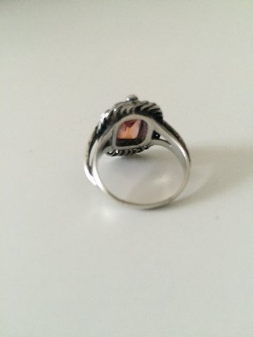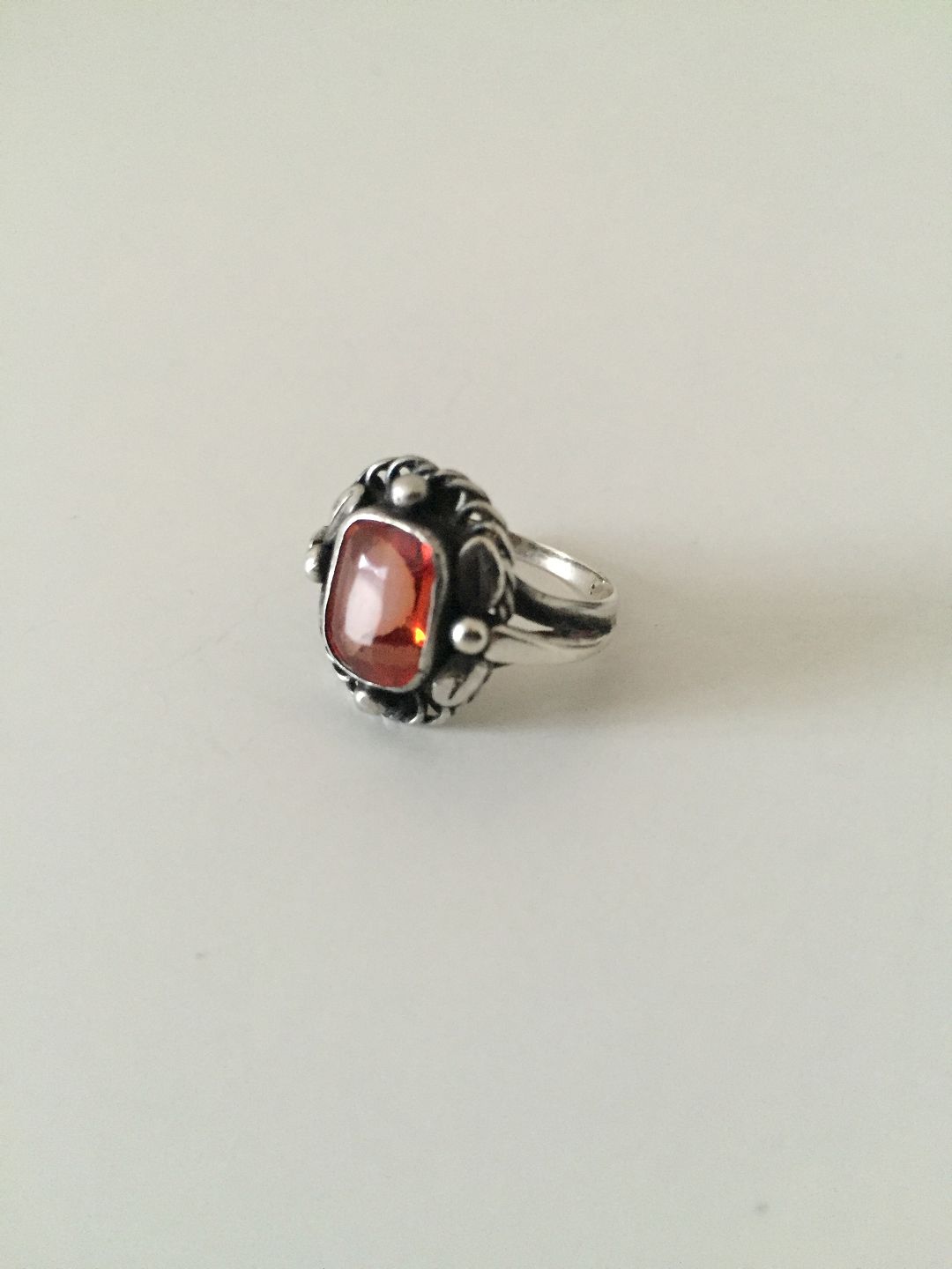 Georg Jensen Sterling Silver Ring with Orange Syntetic Sapphire No 10. With very worn marks, but it can be seen it is from 1933-1944. Ring Size 50 / US 5 1/4. Weighs 4 g / 0.14 oz.