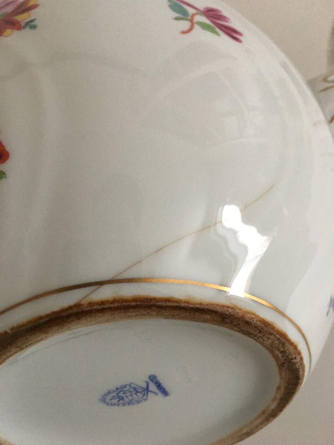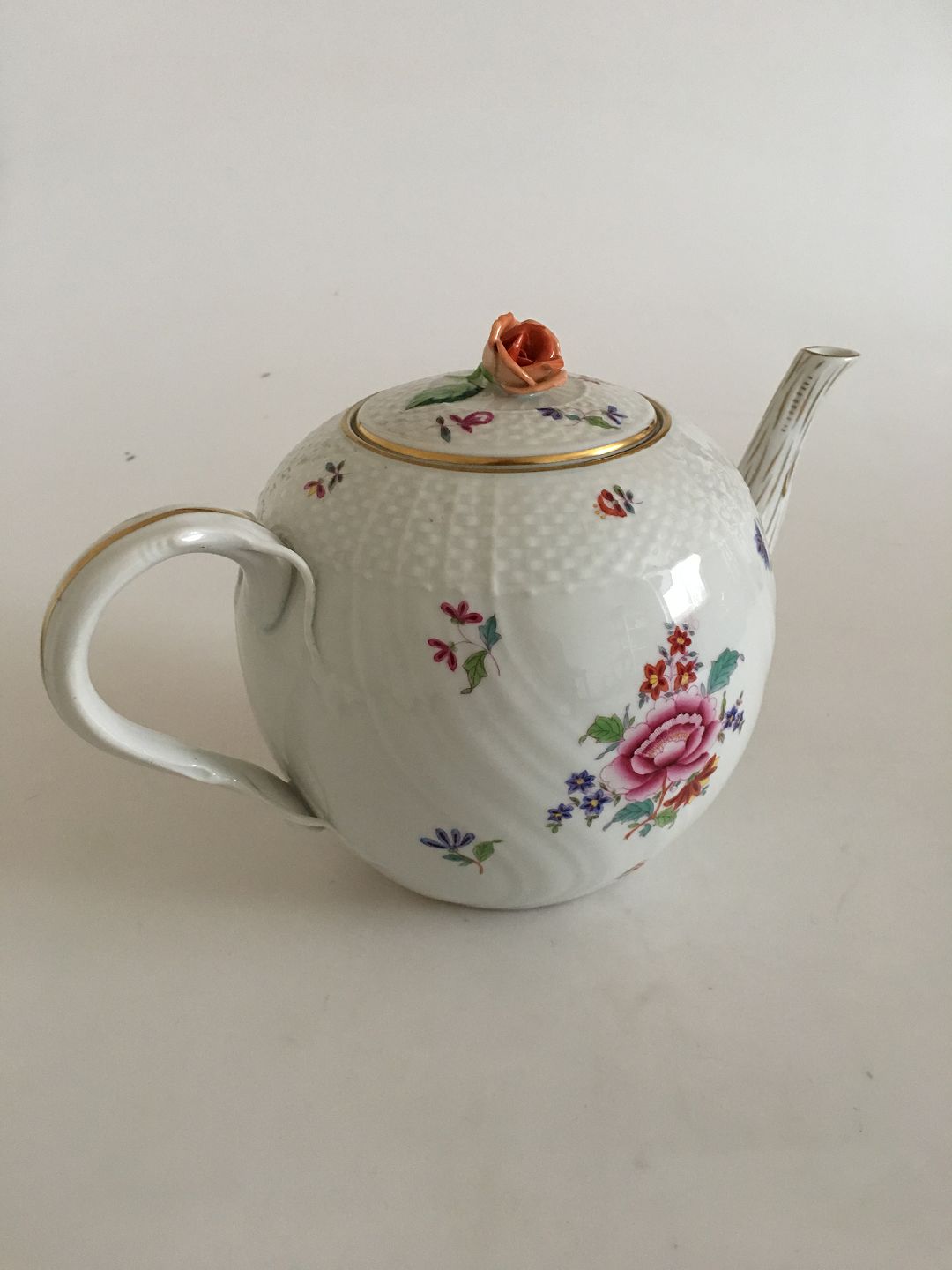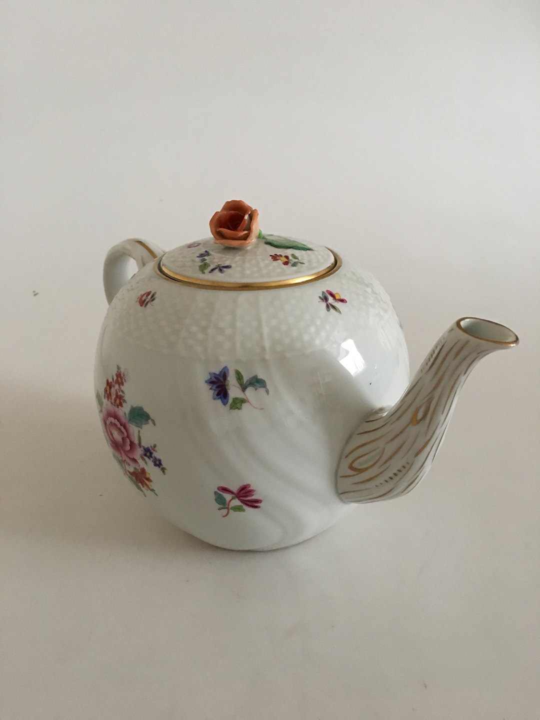 Herend Ungarn Thekande, håndmalet blomster. Har hårrevne og lille afslag. Måler 27cm.