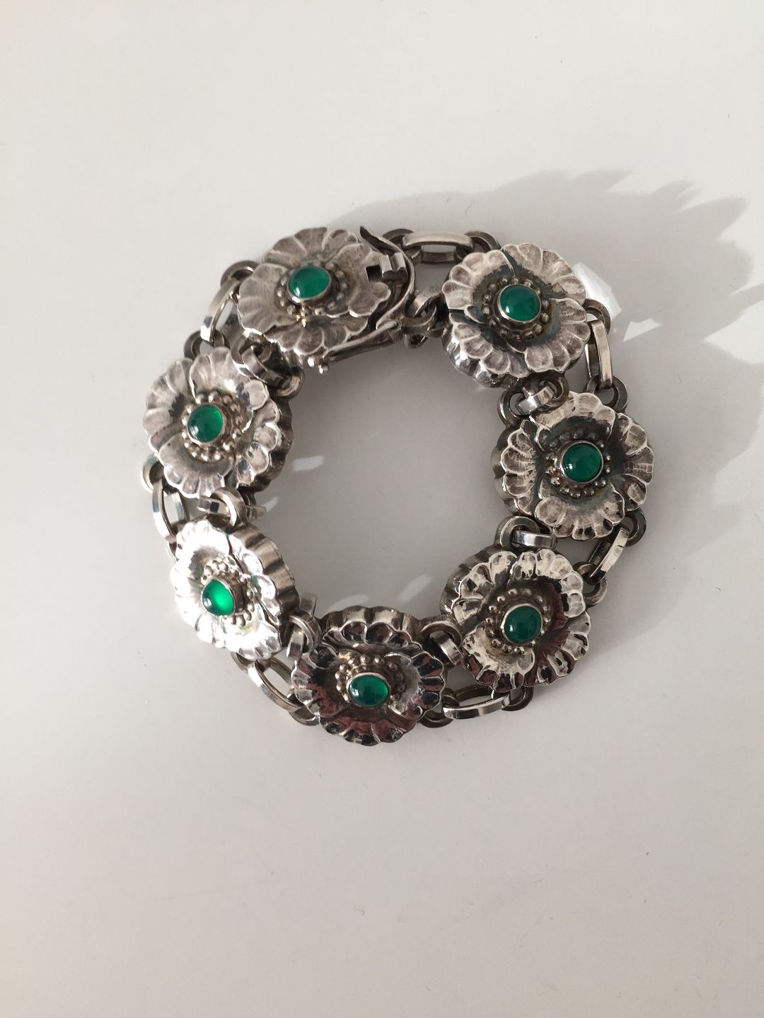 Georg Jensen Sterling Sølv Armbånd med Grønne Sten No 36. Måler 19 cm og er i perfekt stand. Vejer 32,8 g