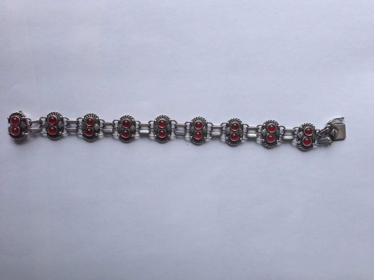 Georg Jensen Sterling Silver Bracelet with 18cabochon-cut cornelians No 8. Measures 19cm. Weighs 28g / 0,99oz