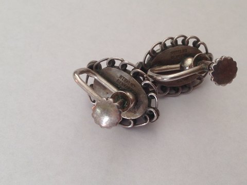 Ring size is 55 1/2 and weighs 6gram /0,2 oz. Brooch measures 6,1cm/ 2 2/5" and weighs 9gram / 0,3 oz. Earclips measures 2,2cm / 7/8" and weighs 9gram / 0,3 oz.