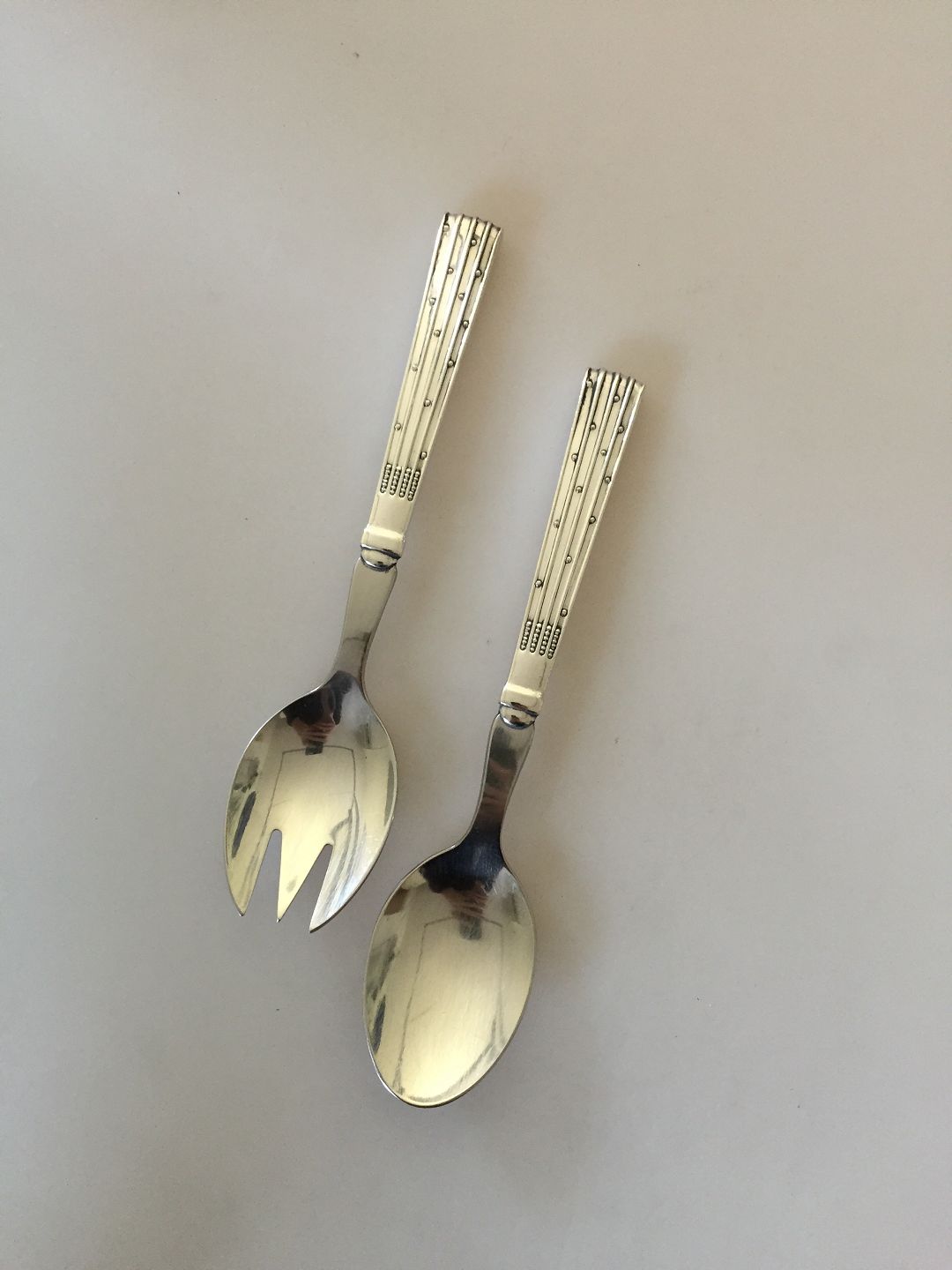 Champagne O. V. Mogensen Sølv Stort Salatsæt. Måler 21 cm. 3 tårnet fra 1959.