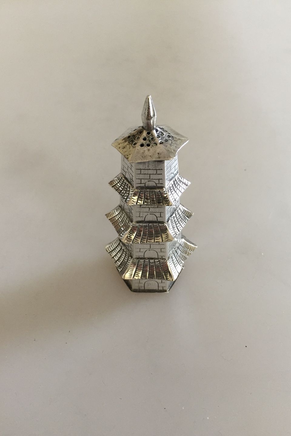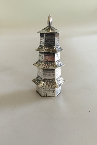 Sterling Silver Salt/Pepper shaker as a Chinese Tower.