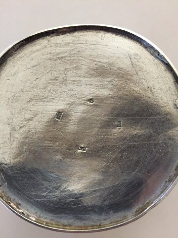 Svensk Sølv flødekande fra 1888 med nøgen mand og pige. Måler 8 cm i højden og 7 cm diameter.