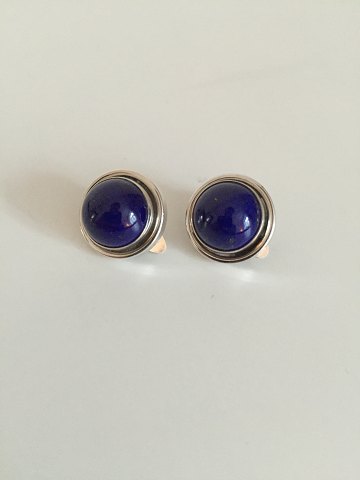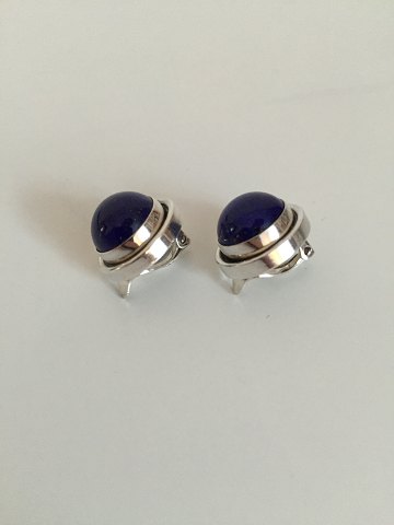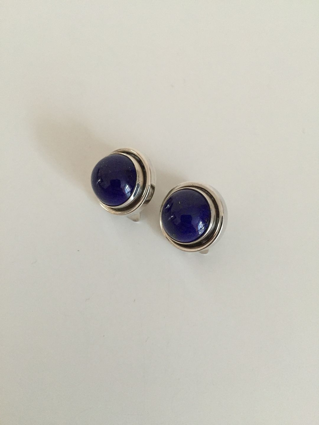 Georg Jensen Sterling Sølv Øreklips No 86D med lapis lazuli designet af Harald Nielsen.