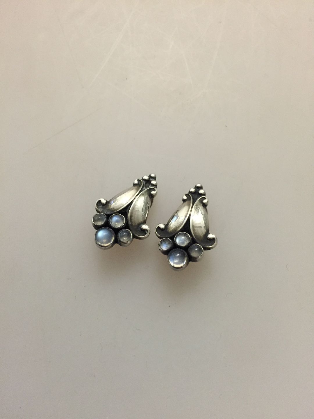 Georg Jensen Øreklips i Sterling Sølv og Månesten No 32B fra efter 1945