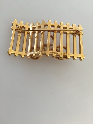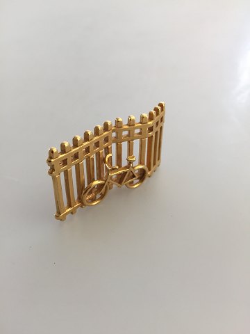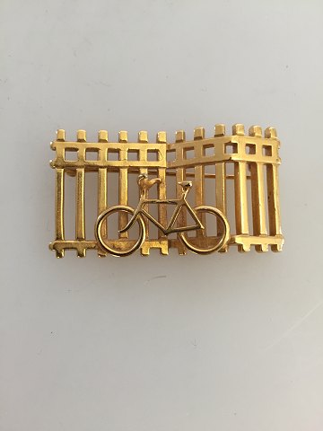 Georg Jensen forgyldt Messing Broche No 252 med Stakit og Cykel. Designet af Ole Bent Petersen