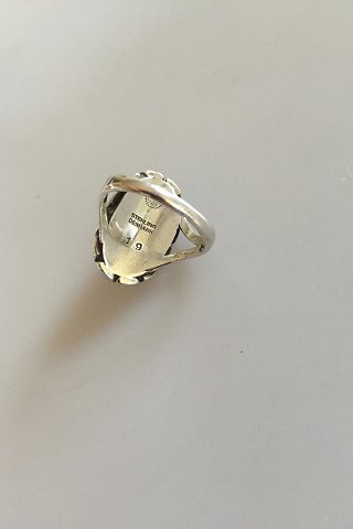 Georg Jensen Sterling Sølv Ring No 19 med Klar Grøn Agat. Fra efter 1945. Ringstørrelse No 54. Sten måler 2 cm x 1 cm.