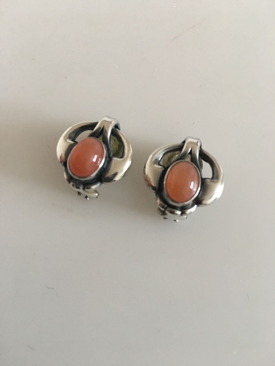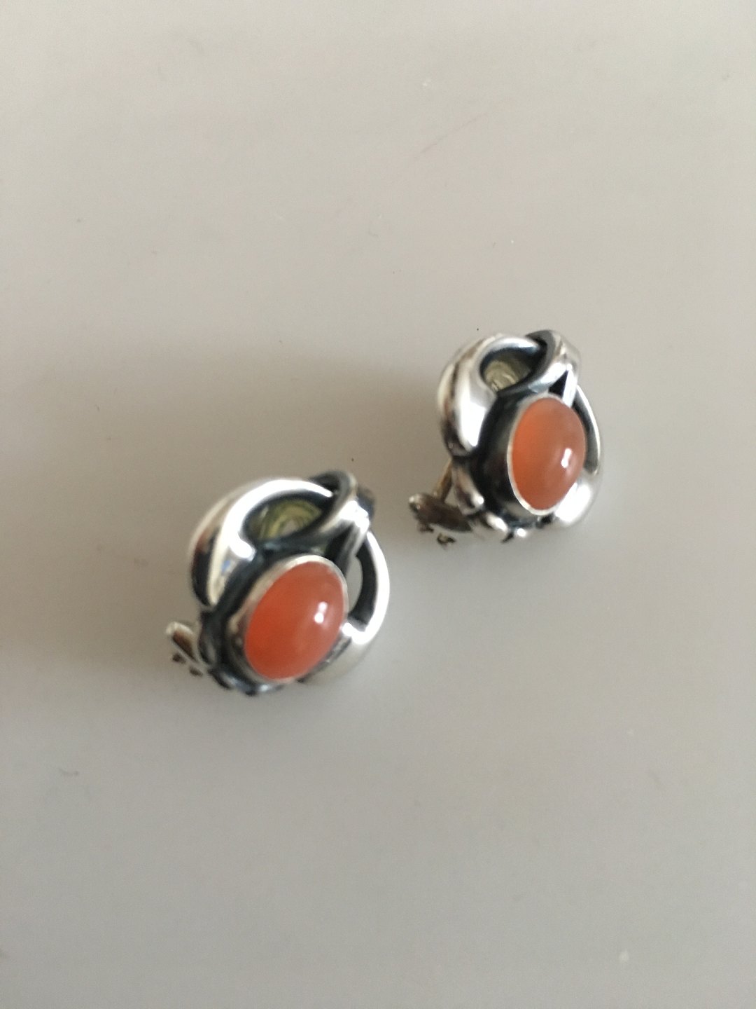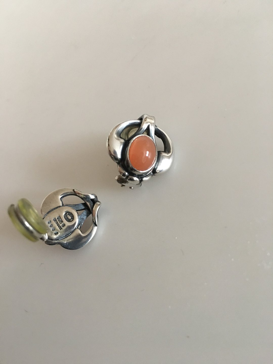 Georg Jensen Sterling Sølv 2006 Års Øreringe, Klips med Orange Månesten.