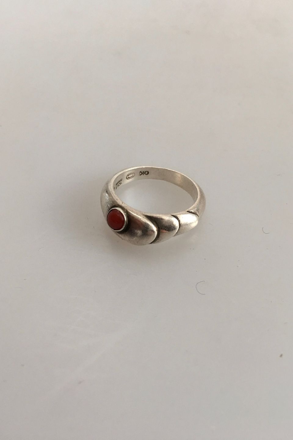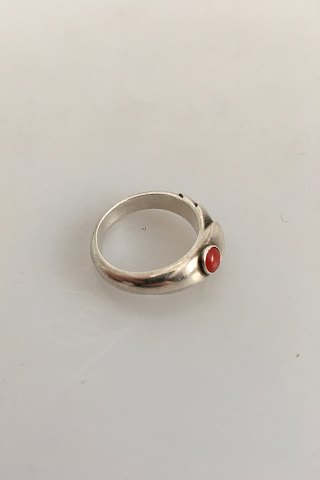 Georg Jensen Sterling Sølv Ring No 362 prydet med rød sten. Efter 1945.
