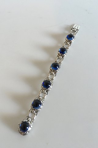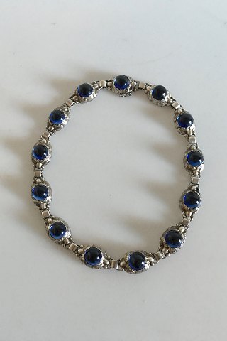 Georg Jensen Smykkesæt af Sterling Sølv, Prydet med Klare Blå Sten. Halskæde No 51A, Armbånd No 57A, Ring No 11A. Armbåndet er fra 1933-1944 de resterende ting er med nyere stempler fra efter 1945.