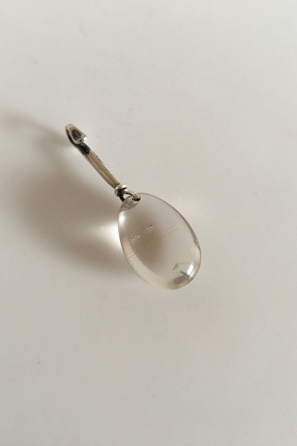 Georg Jensen Sterling Silver Torun Pendant No 130 in Rutil Quartz. Designed by Vivianna Torun Bülow-Hube. Measures 4.9 cm / 1 59/64 in. x 1.5 cm / 0 19/32 in. Weighs 7 g / 0.30 oz.