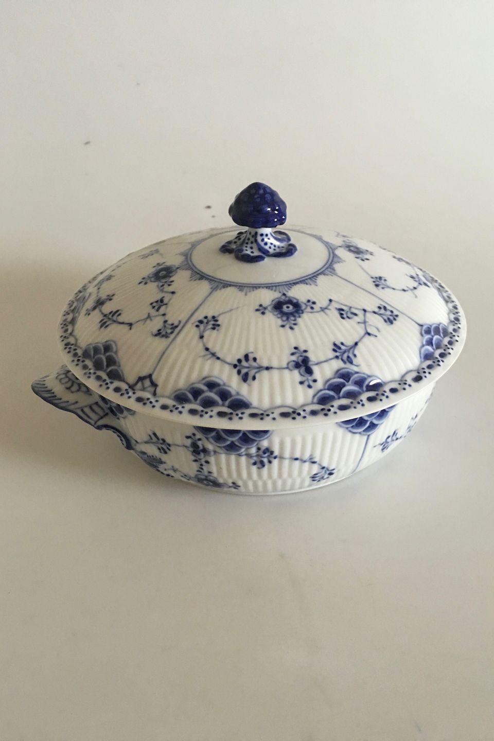 Royal Copenhagen Blue Fluted Half Lace Round Tureen with Lid No 658. 12 x 17.5 cm (4 23/32" x 6 57/64")