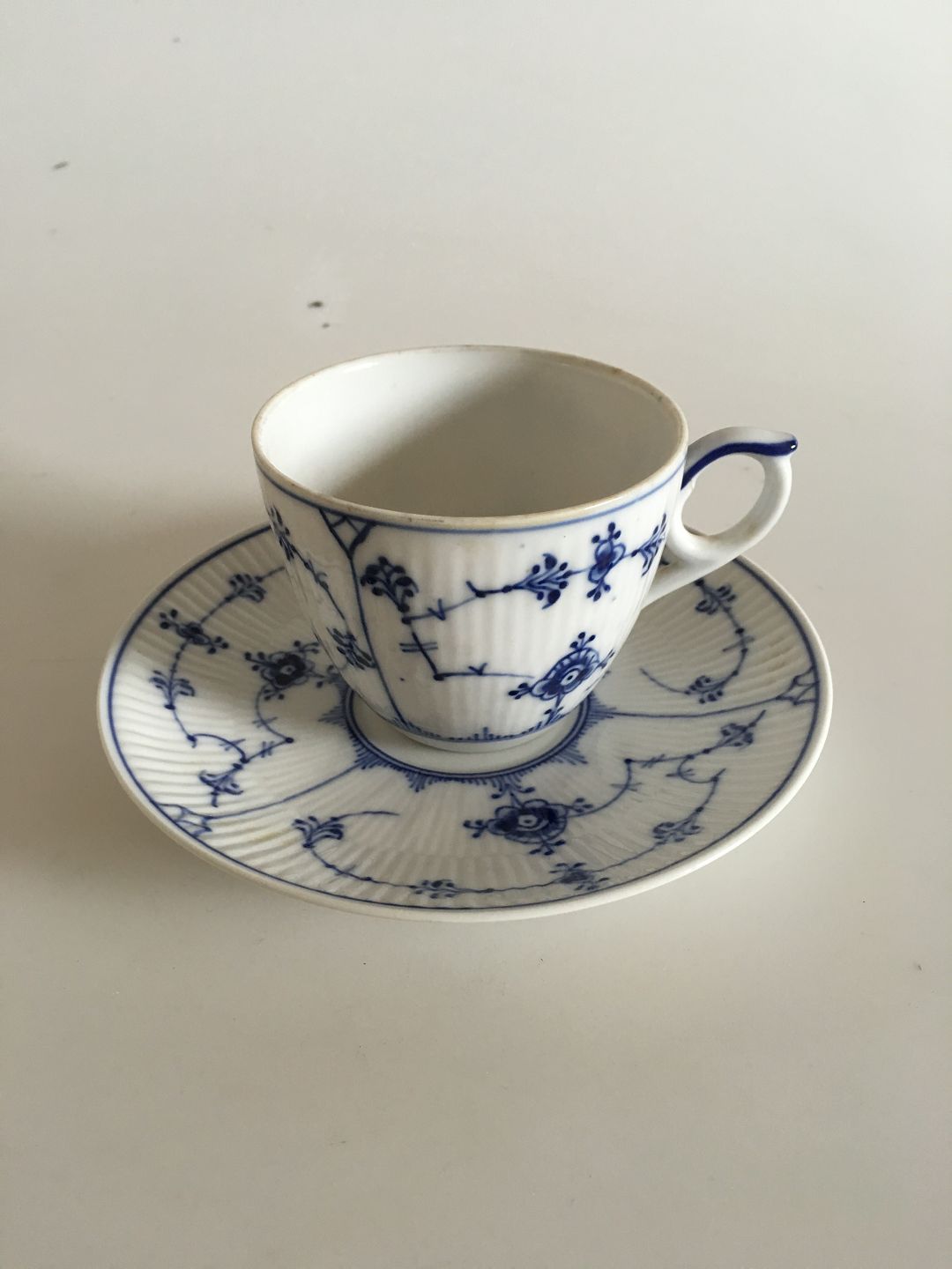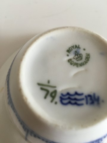 Royal Copenhagen Blue Fluted Plain Tea Cup and Saucer No. 79. Measures 6.5 cm / 2 9/16 in. x 8 cm / 3 5/32 in. dia. Saucer 14.5 cm / 5 45/64 in.