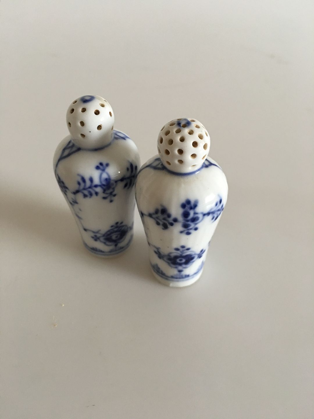 Royal Copenhagen Musselmalet Riflet Salt og Peber Sæt No 439. 6.5 cm. Der skal en ny prop i bunden på begge shakere.