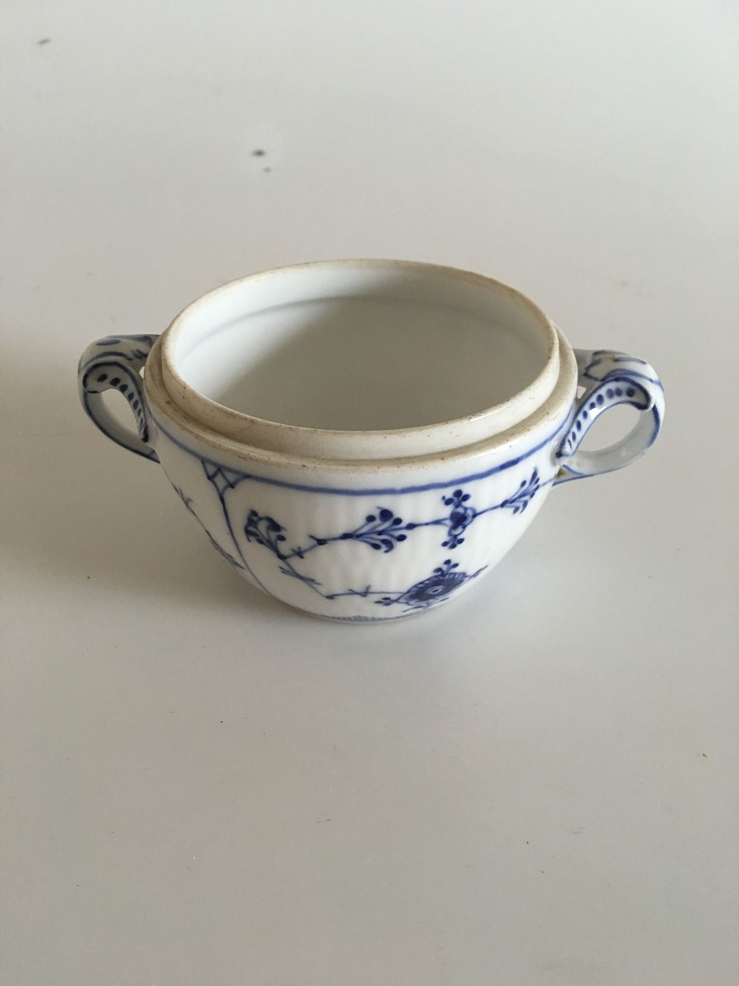 Royal Copenhagen Blue Fluted Plain Sugar Bowl without Lid No. 428. Measures 8.5 x 6.5 cm / 3.34 in. x 2.55 in.
