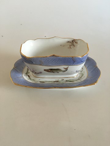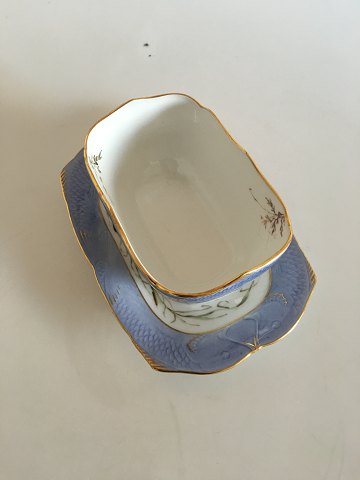 Royal Copenhagen Blue Fish Sauce Bowl with Gold Border. 10 cm tall. The sauce cup itself measures 14.5 x 9.5 cm (5 45/64" x 3 47/64")