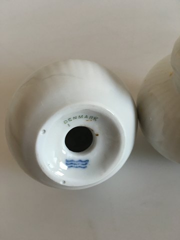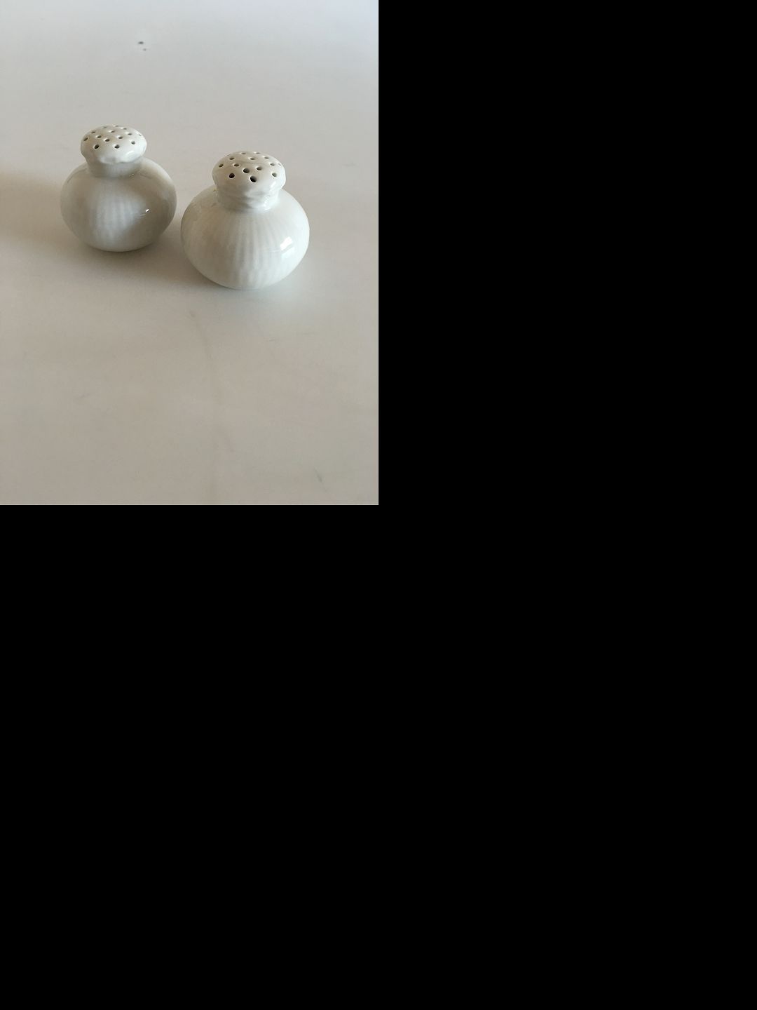 Royal Copenhagen White Half Lace Salt & Pepper Shakers. 6 cm tall. Each shaker needs a new bottom lock piece.