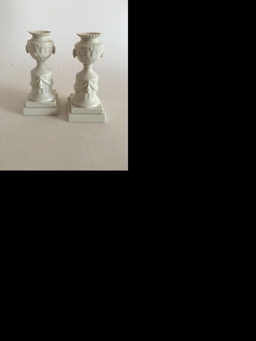 Royal Copenhagen White Flora Danica Set of Two Candlesticks. 17 cm tall (6 11/16"). In fine condition.
