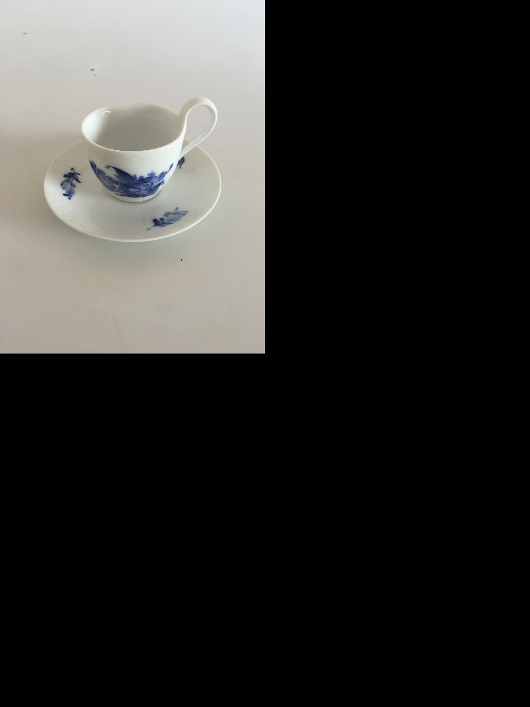 Royal Copenhagen Blue Flower Braided Coffee Cup and Saucer No 8193. 5.5 x 7.5 cm (2 11/64" x 2 61/64")