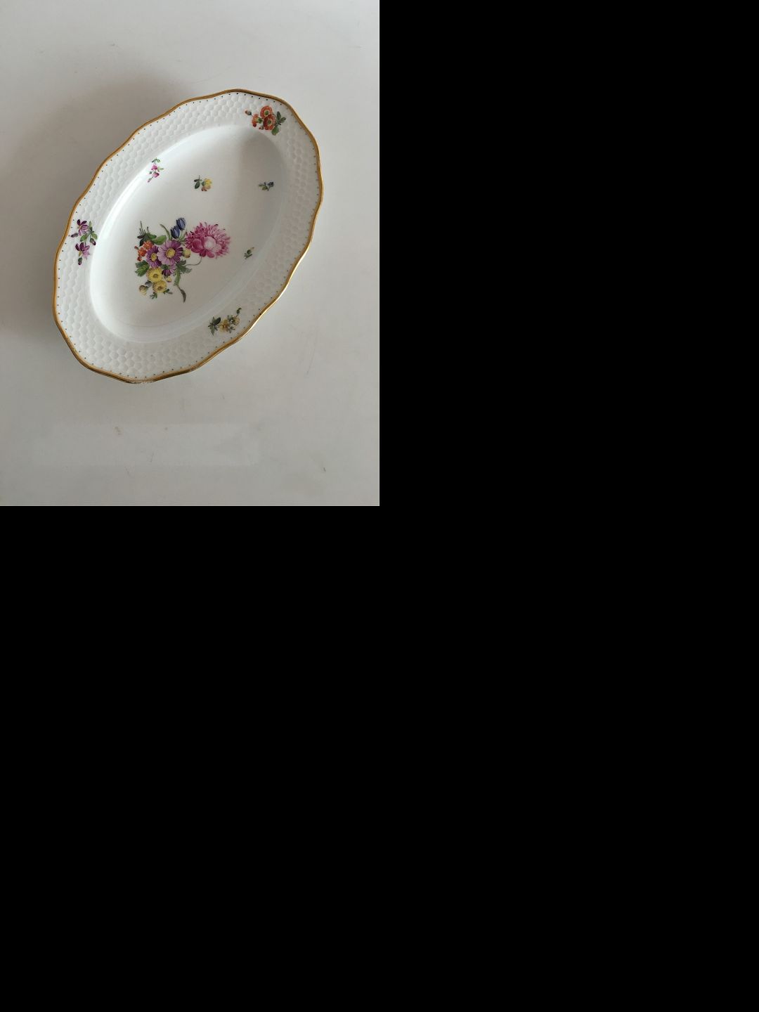 Royal Copenhagen Blomstret Ovalt Fad. 26.5 cm. Af ældre dato, fra 1870-1880