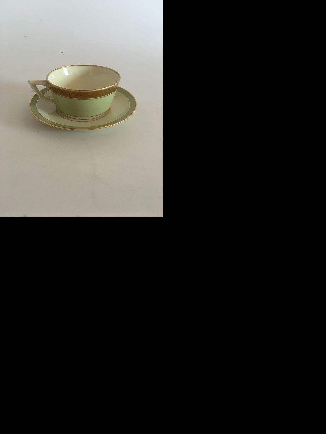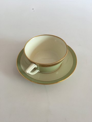 Royal Copenhagen Dagmar Tekop og Underkop No. 9536. 22 cl (7 2/5 oz.) Pistaciegrøn og cremefarvet stel med guldkant designet af Thorkild Olsen i 1930erne