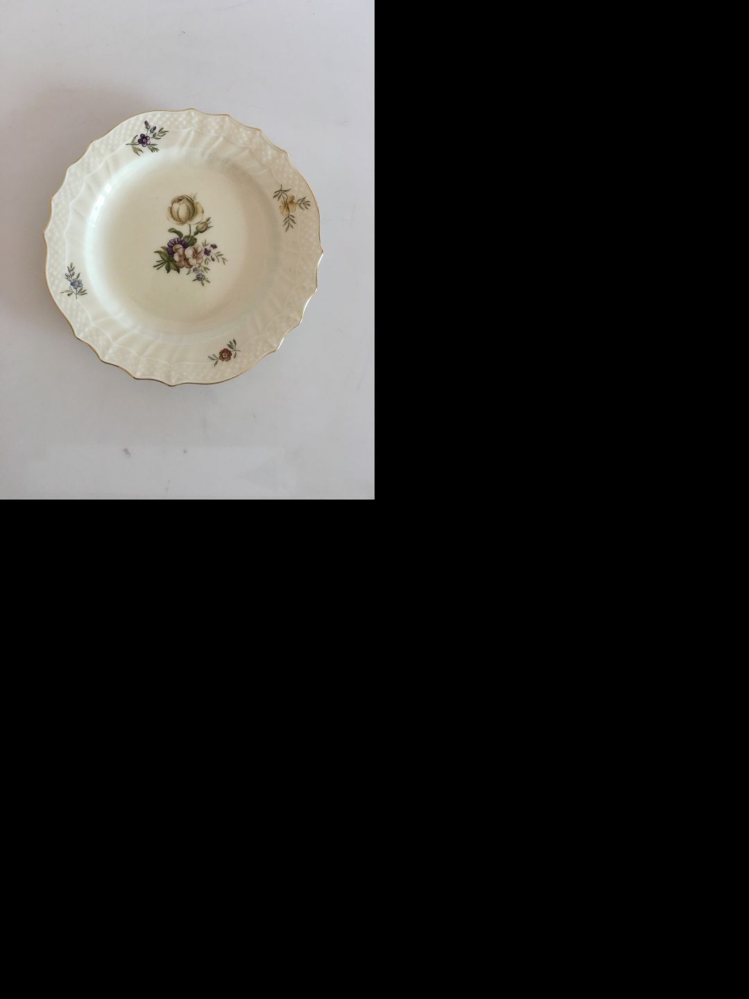 Royal Copenhagen Frijsenborg Cake Plate No 1625. 17 cm (6 11/16"). Creme colored with flower motifs and gold named after the Danish noble county of Frijsenborg,