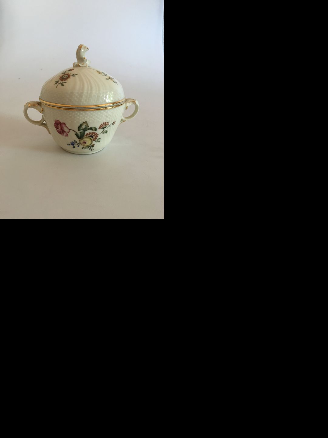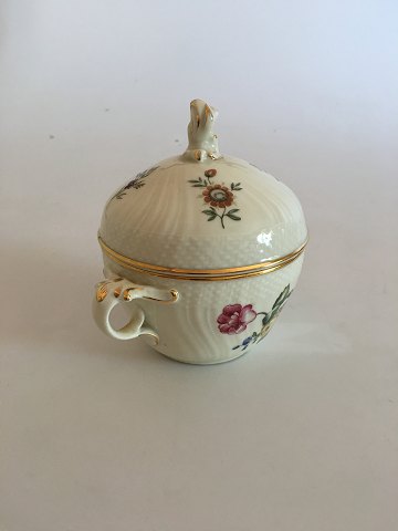 Royal Copenhagen Frijsenborg Stor Sukkerskål med Låg No 1865. Måler 8 x 10.5 cm uden låg. Cremefarvet stel med blomstermotiver opkaldt efter godset Frijsenborg.
