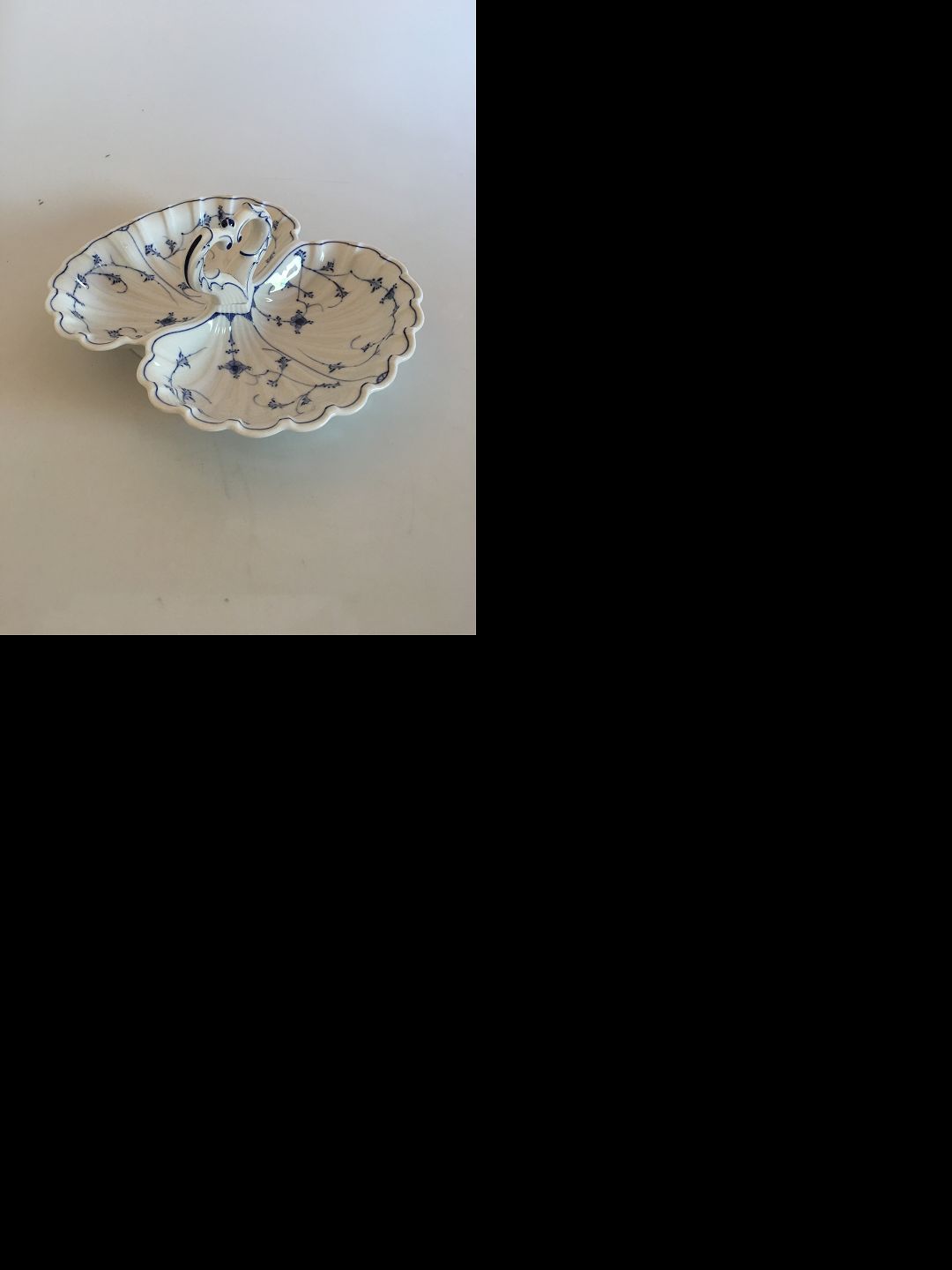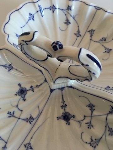 Royal Copenhagen Musselmalet Riflet Kabaretfad No 395 31 x 25.5 cm. Der er en brændings sprække omkring håndtaget, se billede.