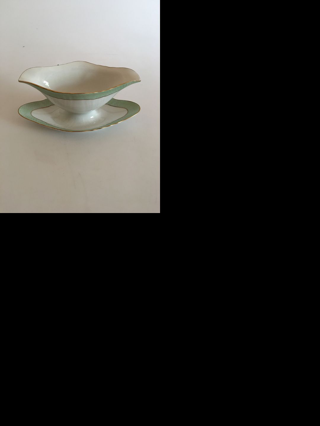 Royal Copenhagen Green Curved with Gold Sauceboat No 1871. 12.5 x 25 cm (4 59/64" x 9 27/32")