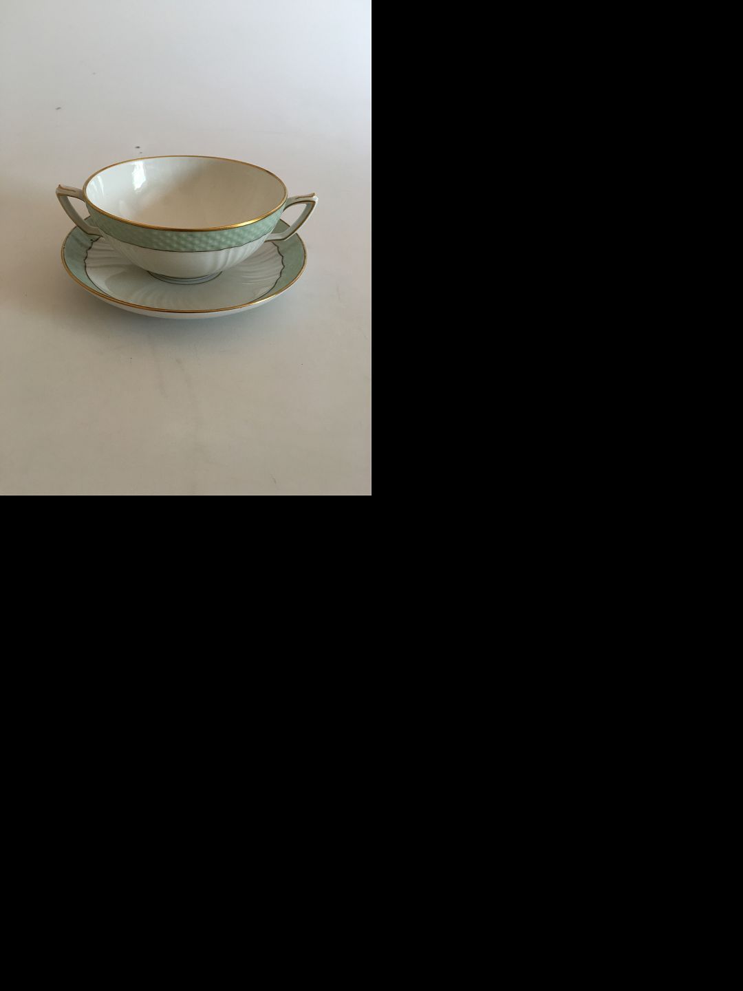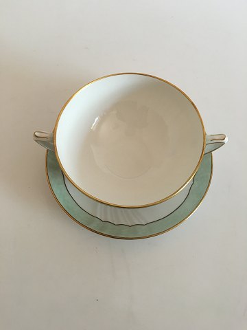 Royal Copenhagen Grøn Svejfet med Guld Bouillonkop og Underkop No 1872. Koppen måler 6 x 13 cm