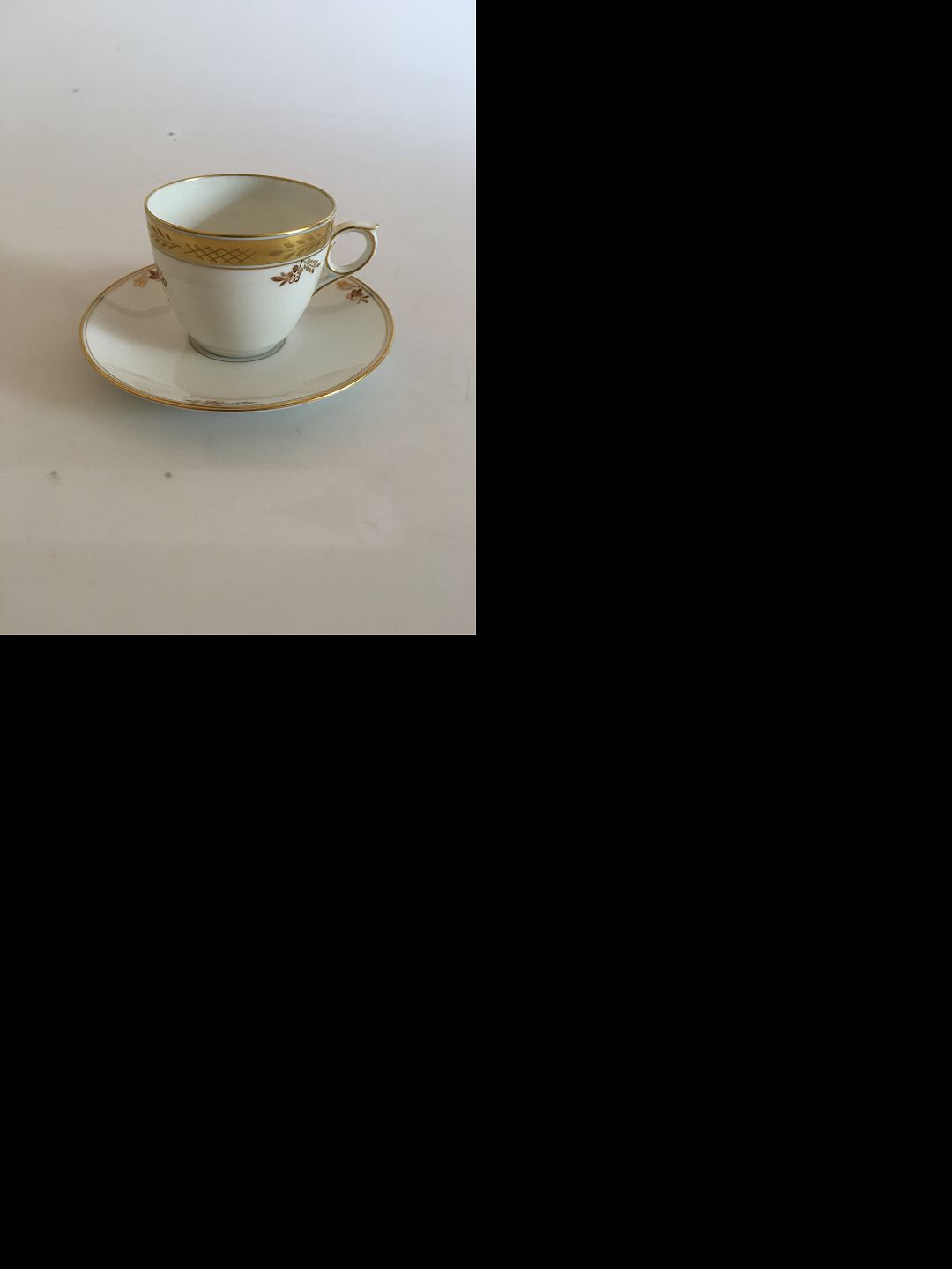Royal Copenhagen Golden Basket Coffee Cup and Saucer No 9452. Cup measures 6 x 7.5 cm (2 23/64" x 2 61/64")