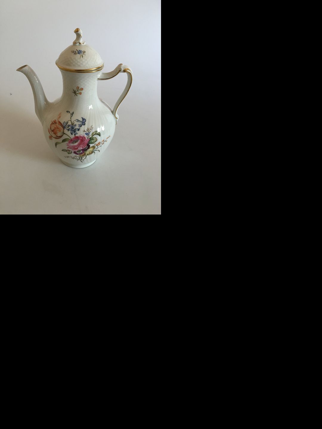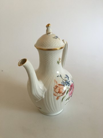 Royal Copenhagen Trelleborg Kaffekande No 1794. Måler uden låg 21 cm høj. Hvidt stel med blomstermotiv. I fin stand.