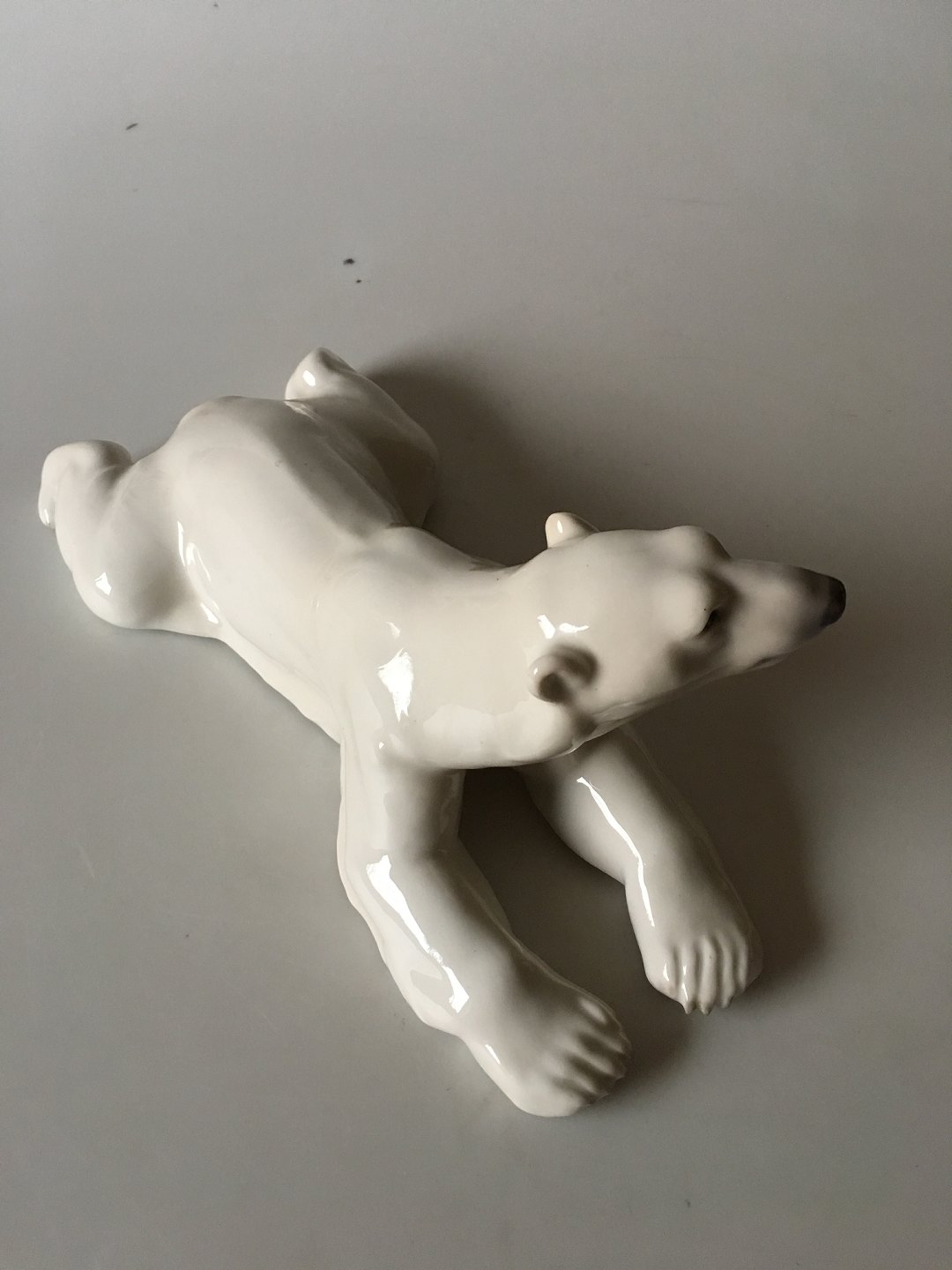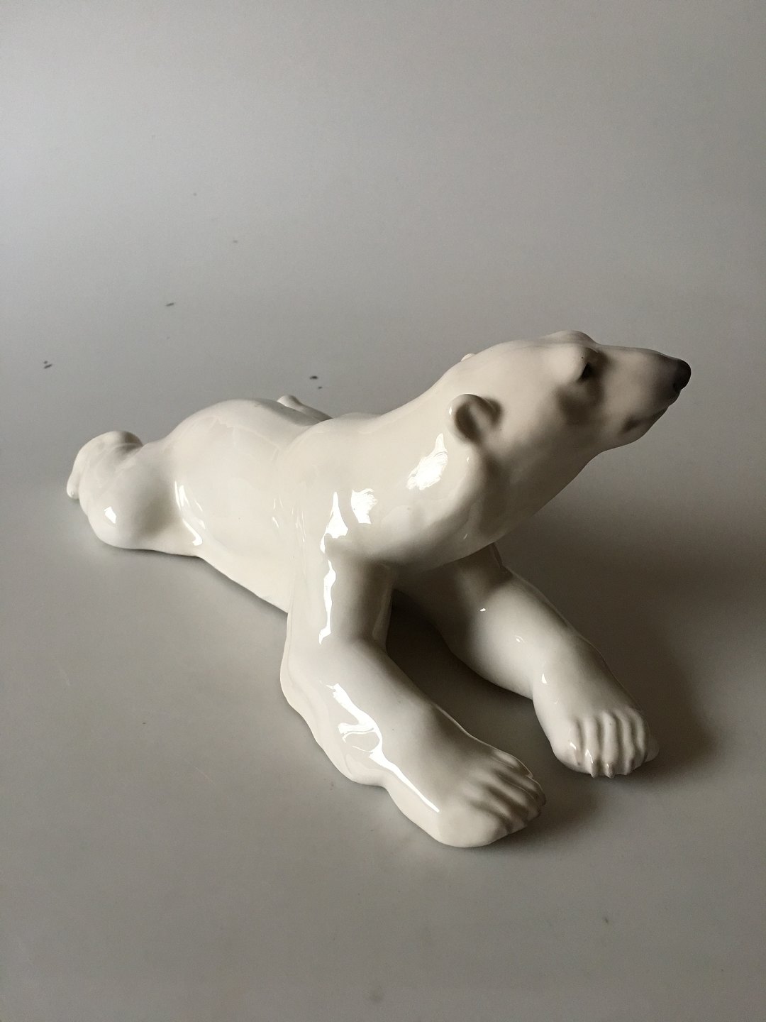 Royal Copenhagen Figur Liggende Isbjørn No 1250. Måler 31cm x 13cm og er i god stand.