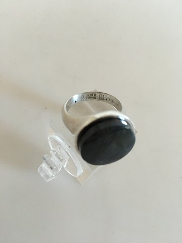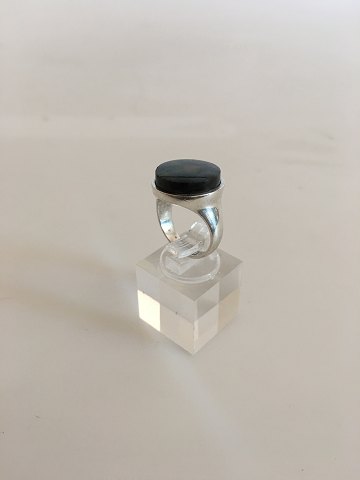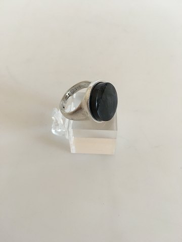 Georg Jensen Sterling Sølv Ring med Blålig Sten No 177. Designet af Bent Gabrielsen. Ring Str. 49. Vejer 10 g