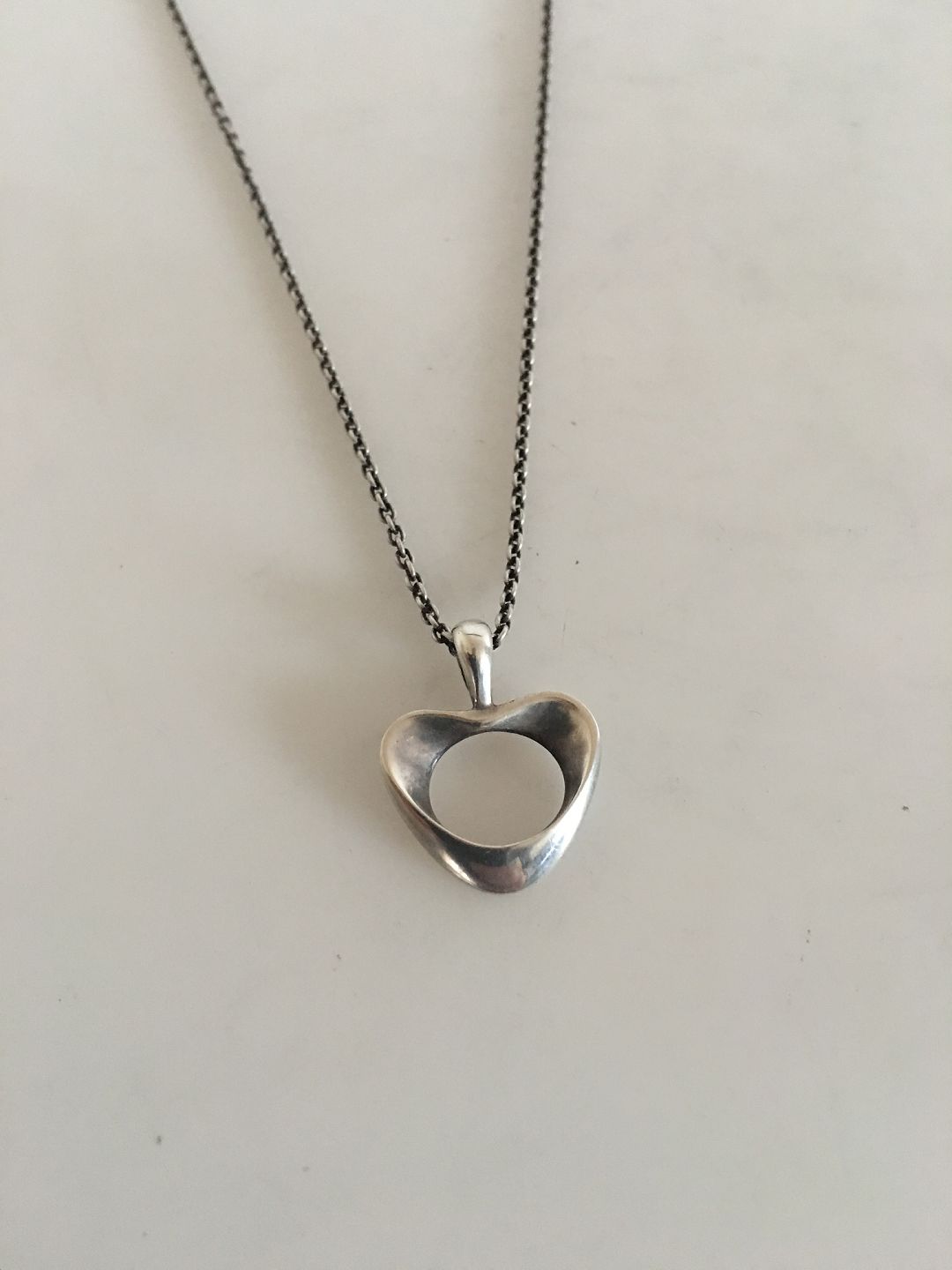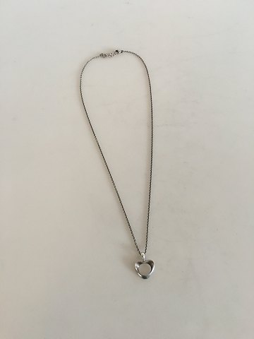Georg Jensen Sterling Sølv Halskæde med Lille Hjertevedhæng. Måler 42 cm (kan udvides til 45.5 cm). Vejer ca 3 g